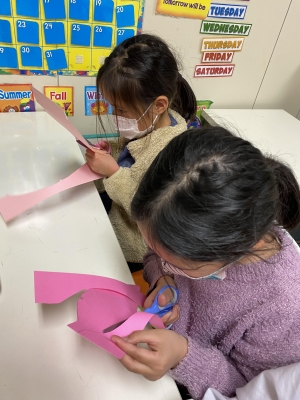 皆一生懸命色画用紙を切っていますが、何を作っているのでしょう?