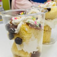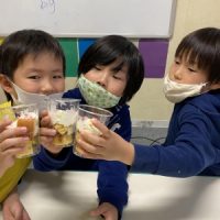 今月は、みんなでトライフルを作って、3月生まれのお友達のお誕生をお祝いしました😊 “Happy Birthday 🎉” “Who wants more chocolate sauce? …