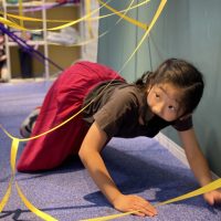 今日はFun Fun Friday ! The students make their way through the maze without touching the streamers. 紙テープを使って迷路を作り …