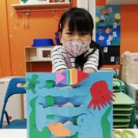 今日のArtの時間は、今月のテーマにそって 立体的な海の世界を作成しました。 まずは自分の好きな海の生き物を作り、海も 作っていきます。 波も作りました。 そこに作成した海の生き物などを組み込 …
