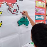 今日はSocial Studiesの世界地図についてレッスンをしました。 地球儀のどこにOceanがありますか!? すぐに大正解でした! 7大陸について先生のお話しを聞きます。 まずはアジアの …