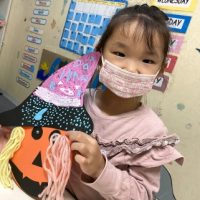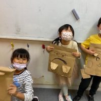 ハロウィンを今週末に控え、子ども達はハロウィンの話題で持ちきりです。今日のアートでは、大きな紙袋を使ってMonster Mask(モンスターのお面)を作りました。 どんなモンスターにしようかな?想像力を膨らませてモンスタ …