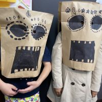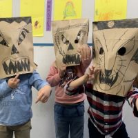 本日はペーパーバックを使ってモンスターマスクを作りました! Frankenstein, Ghost, Momsterといったハロウィンにちなんだマスク作りに挑戦! 顔のパーツを左右対称にしながら描いていきます。 先生も一 …