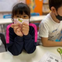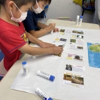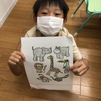 本日はアフリカに住んでいる動物について学びました。 アフリカの動物について詳しい説明を聞きます。 みんな興味津々です。 自分の好きな動物に色を塗り、ハサミでカットします。 先週作 …