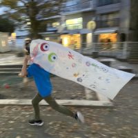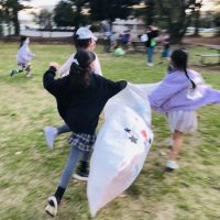本日は先週作ったgarbage bag monsterを持って公園に行き、レースを行いました。 袋に走りながら空気を入れ、口をうまくおさえ、より空気がたくさん入った方のチームが勝ちというルールでレースを行いました。 先ず …