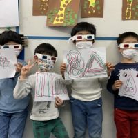 本日は二色の色を使って”Pop Up Picture”を作りました! まずは最初に先生がホワイトボードに二色のマーカーで3Dの仕組み、描き方を説明していきます。 その後、実際に3Dメガネをかけて、描いた絵がどのように見え …