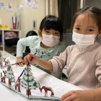 小学校2年生は、先週と今週の2週に渡り「Snow Scene in the Wood」の作成に取り組んできました。 冬の森はどんな景色かな?森にはどんな動物が住んでいるかな?1週目は、想像を巡らせながら動物と森に色を塗り …