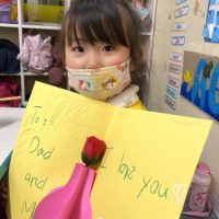 今週のFun Fun FridayはValentine Rose🌹 Valentineに向けてメッセージカードを作りました💌 大好きなお父さんとお母さんへ心を込めたメッセージに1本のバラをそえて❤️ Good job❣️ …