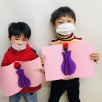 Let’s make a special Valentines present using a red rose❣️ 2月14日のバレンタインデーに向けて、素敵なカードを作りました‼︎ 色紙を切り抜いて花瓶を作り、 &# …