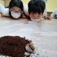 今月のmonthly themeは Life cyclesです! 色々な生き物のライフサイクルについて 学んでいきます 今日は、スクールに カブトムシの幼虫がやってきました! 近くで見ると なかなか迫力がありますね! プ …