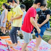今週のFun Fun FridayはFoot Print👣 夏らしく、裸足になって巨大なArtを作りましょう✨ まずはcolor作りから! 赤と青を混ぜたら何色になるかな? みんな真剣な眼差しでみつめます。 Wow!! …