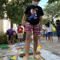 本格的に夏が始まりました❣️ Fun Fun Fridayの今日は、 公園で足跡アート👣に挑戦しました。 Which color do you like?? 大きな段ボールに足跡を付けて、 しっかり歩きましょう。 みんな …