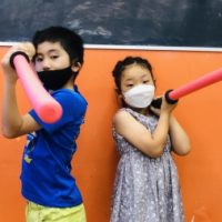 7月2週目のFun Fun Fridayには 忍者が荻窪校にきてくれました☀️ 時代劇の刀を使った立ち回りを レクチャーしてもらいます⚔ “殺陣講座”といって 刀の持ち方や振り方を習いました。 上段、真向斬り …