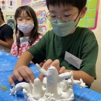 今週のSummer Programは、いろいろな材料を使ったものづくり体験に挑戦しています。 今回は紙粘土を使い、「サボテン」を制作しました。 Hnmm, It’s hard to make the spikes.. ト …
