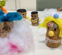今週のArtはLittle People❣️ コルクを使って可愛いお人形を作りましょう😊 毛糸を頭につけて髪の毛の様にしたり、 モールをドレスの様に巻き付けてみたり、子どもたちの発想はとっても豊かです✨ これは帽子をイメ …