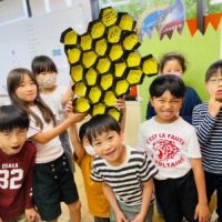 今月のサイエンスのテーマは、bee🐝です。 今日のボキャブラリーは、 lava,pupa,honeycomb,honeyです。 beeは、お花が育つのを助けていて、とても重要で す。Accsseでは、卵から幼虫なり蛹にな …