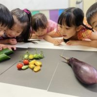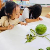 畑で採れたての野菜をよーく観察して、 図鑑の様な絵を描いてみましょう🥒 手に野菜を持ち、じっくりと断面をみながら集中して描いていきます。 指で描いたラインを軽く擦ると影がでて本物みたいに描けるよ!クラスのお友達が教えてく …