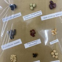 今日のアートはさまざまな種を使って秋の収穫祭にむけたオーナメントをつくります。 用意した種の種類は9種類です。 黄色や赤、黒などカラフルな種を揃えました。 好きな形を選んだら紐をとおしましょう。 綿棒でボンドをつけて、一 …