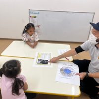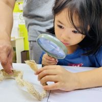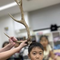 北海道の特別天然記念物、タンチョウの生態、蛇の生態を勉強しました。 本物の蛇の抜け殻に驚くどころか興味深々。 “Measure it, How long is the skin?” “155cm! “ ちゃんと書いておか …