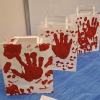 Halloweenが近づいてきましたね。 今回の Fun Fun Friday は、ハロウィンのパレードでお菓子をもらうための treat bag を作りました。 今年のtreat bagは、色は赤のみを使用し、血をイメ …