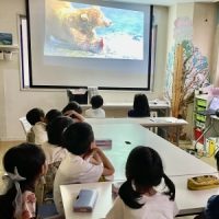今日は北海道の動物にターゲットを当てました。 まずは、ヒグマ! 生態を学び、もしも森の中で出会ったらどうすればいいか? ヒグマのお面を被って、遭遇した時の対処方法を学びました。 みんな真剣に死んだふり(play dead …