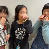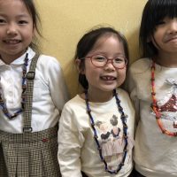 今日はみんなでアクセサリーを作りましょう! 材料はなんと…Snacks!! ネックレス作りに集中しつつ、 It smells really good! I want eat!!! とお菓子に夢中です。 美味しそうで、かわ …