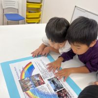 今週は、みんな大好きピニャータ作りです! 先生に作り方を教わりながら、何個かのチームに分かれてオリジナルピニャータを作っていきましょう🛍️ 画用紙を細長く切ったものにフリンジを貼り、それを紙袋に巻きつけていく工程の中で、 …