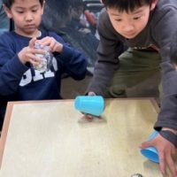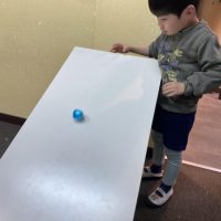今日は身近なものを使って、不思議なアートを作りました。このアート、斜面の上で転がすと予測不能な動きをします。「なんで?」「どうして?」…それは出来上がってからのお楽しみ! まずは、アルミホイルにマーカーで色を …