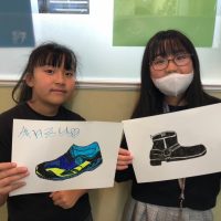 今月は「It’s My Favorite」のテーマで、洋服や帽子など普段私たちが身につけるものについて学んでいます。今日のアートは、普段履いている自分の靴を題材に絵を描きました。 毎日履いている靴や見慣れた靴 …