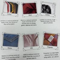 今月のテーマはMy Favorite Fashion です。 1週目の今日はMaterial やPattern について学びました。 Wool や Denimはみんなも聞いたことがあったようですが、Leather,Sil …