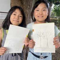 今日のアートは近くの公園に行き、 面白いものを見つけて絵にしてみましょう🌷 普段遊びに来ている公園には何がある?たくさんの大きな木があり、子どもたちは”How many trees do you s …