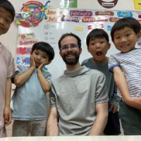 今日のレッスンはOpposite day、なんでも言ったことを反対にする日です。 まずは靴を左右反対に履いてみました。 なんだか変な感じ!? 今度は服を逆にきてみます。 Pre-accessの子ども達は逆に歩いて壁に …