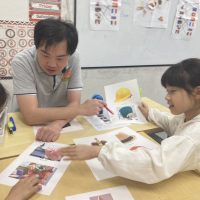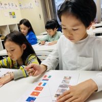 GWが終わっての今日、反対言葉の授業でした。 勿論英語のです! manyとfew smallとbig おもちゃを使って表現しています。 プリアクセスの子供達は、言葉の概念がまだちょっと難しいけど塗り絵を通して学びまし …