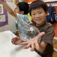 今日はBalloon Activityで盛り上がりながら6月のお誕生日パーティーをしましょう😊 はじめは小さかったBalloonも、だんだんコツをつかみ大きなBalloonを作ることができました❣️ 手に乗せて遊んでたら …