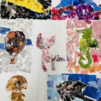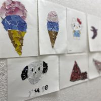 8月に入り、今日のアートは、コラージュです。 捨ててしまうチラシや雑誌をよくみて見ましょう! まず、捨ててしまうチラシ、雑誌をちぎりまし た。ちぎるのも楽しいですね❗️ これは、何色かな?と色別に分けました。 …