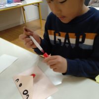 今日のアートは、封筒を動物に見立てたアートを作りました。手紙が届くと嬉しいですよね。 封筒を開けると楽しい仕掛けが飛び出します。 目や耳を封筒にカラーペンで描きました。 「僕は、犬が描きたい!」 「私は、ユニコー …
