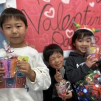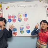 今日のFun Fun Fridayはバレンタインのプレゼントとしてハート型のマグネットを作りました。 はじき絵と言ってクレヨンで下絵を描いて絵の具で上からなぞると、クレヨンの油で弾いて色が着く仕組みです。 みんな真剣です …