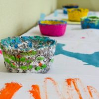 5月のアクティビティで使用した新聞紙を 再利用して工夫したアート作品を つくりました。 新聞紙には見えないほどの 綺麗な出来栄えにうっとりです✨ どのように作ったか気になりますね! 新聞紙を水の中で小さく小さく刻みます。 …