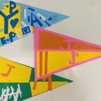 Go 今日のアートは、色画用紙を使ってオリジナルの旗を作りました。 自分を表すものにイニシャルがあります。自分のイニシャルを確認して、アルファベットの文字を切りました。 アルファベットの配置や背景の色にもこだわりました。 …