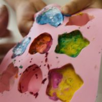 英語幼稚園PIPで 可愛い&エコな活動に挑戦しました! 子どもたちがたくさん使って 小さくなってしまったクレヨン…🖍️ 袋の中に入れて集めていても なかなか使わないので… 色別に小さくカットをしてみました! カットしたも …