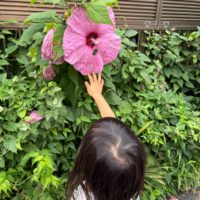 今週は雨模様な1週間ですが、 雨の合間にお散歩に出かけると、 大きなお花を発見した子どもたち🌸 これはハイビスカスかな…?🌺 なんだかとっても大きい! ちょっと触らせてもらっても、 子どもたちのお顔より大きいですね! 子 …