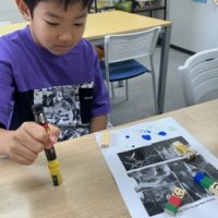 今日のACCESSクラスでは カモフラージュをする虫の生態について 学びました。 カモフラージュって どういうことだろう…? 何のためにするのだろう…? カモフラージュの知識を身につけた後は、 子ども達も蝶々をカモフラー …