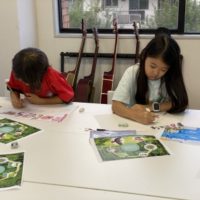 今日のアートは、画用紙を使用し、 丸く型取りし切り抜いていきます。 小さい円と大きな円。 内側の円を切り抜くのは、簡単そうに見えて すごく難しい作業! 生徒達は集中し器用にハサミを使い 切り抜きができました! 規則的 …