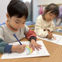 今週のテーマは「光と虹のふしぎ」。子どもたちは、光がどのようにして虹を作るのかを学びました。雨の日や光の反射で見える虹の仕組みを知ることで、自然のふしぎに目を輝かせていました。 ワークシートでは、色の名前を覚えた …