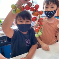 5月にみんなで畑に行き植えた野菜がとれました。 プチトマト、かなりよくできました! 黄緑色のプチトマトは何というのかな? また、赤くないとどんな味がするのかなど 意見を言ってみました。 しっか …