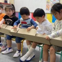 今月のSocial Studiesは自分のことにフォーカスします。新学期が始まりお友だちや先生と出会い楽しい会話のキャッチボールゲーム。その英語での会話のキャッチボールに使ったヤーン(毛糸玉)でお互いに身長を測ってポスタ …