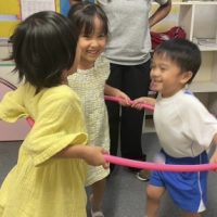 今日はクラスのみんなでアクティビティに取り組みます!ゲームクリアの鍵はみんなの結束力です☺️ 手を繋いで円を作り、隣のお友達と協力しながらフラフープを回していくゲームや 自分のおでこに貼られたシールと同じ色のシールをもつ …