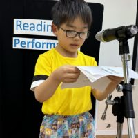 今日は待ちに待った、Reading Performance Dayです! 子ども達は今日のために、それぞれが選んだ英語の本を家やスクールで沢山練習してきました✨ 1人ずつマイクの前に立ち、 「My name is ◯◯. …