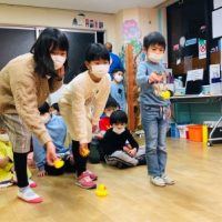 今月の誕生会は寒い冬の暖かいおふろにちなんでRubber Duckieがテーマ。ケーキ作りから熱が入り、「Rubber Duckie Toss」ゲームではエネルギー炸裂。