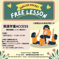 英語学童ACCESS無料体験レッスン受付中です😊 【日時】 6月22日(土)11:00~12:30 【対象】保護者の皆さま 新小1~新小4のお子さま 【場所】イングリッシュポケッ下高井戸校 【お申し込み方法】 メールにて …
